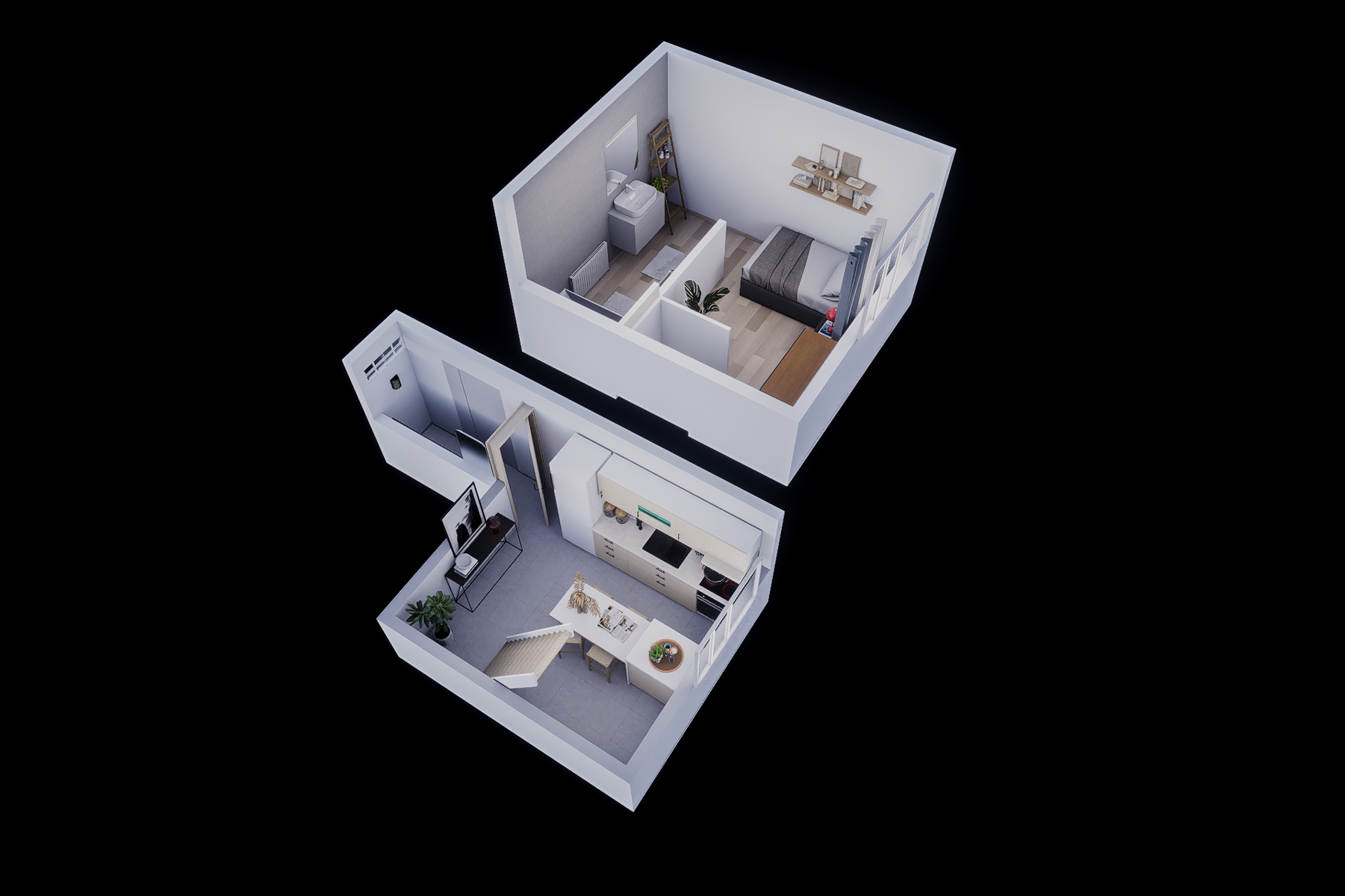 Au premier étage : studio - Séjour ouvert sur la cuisine et une salle de bains. Libre d'occupation (pas encore de photos) - ancien loyer 365€