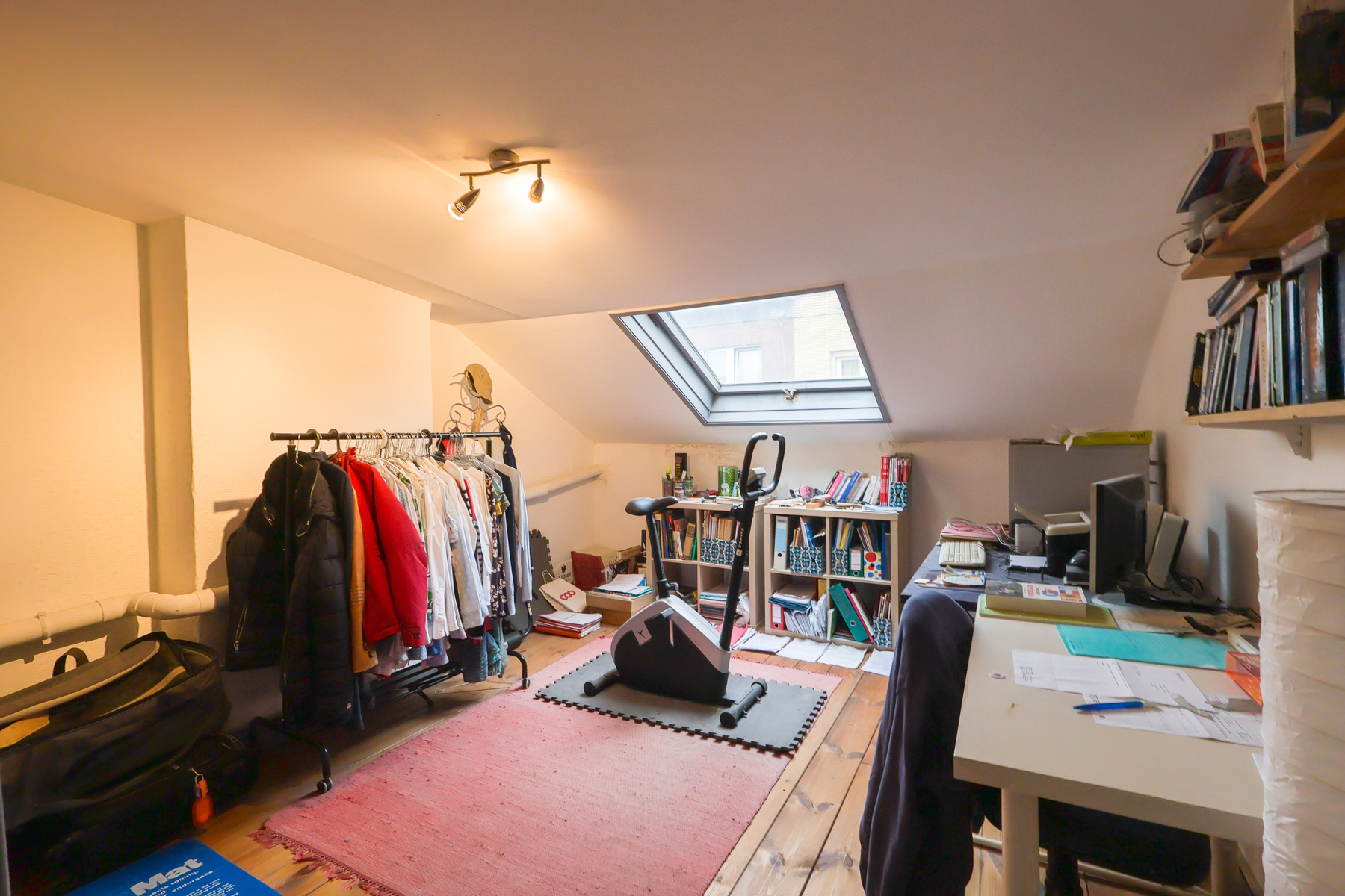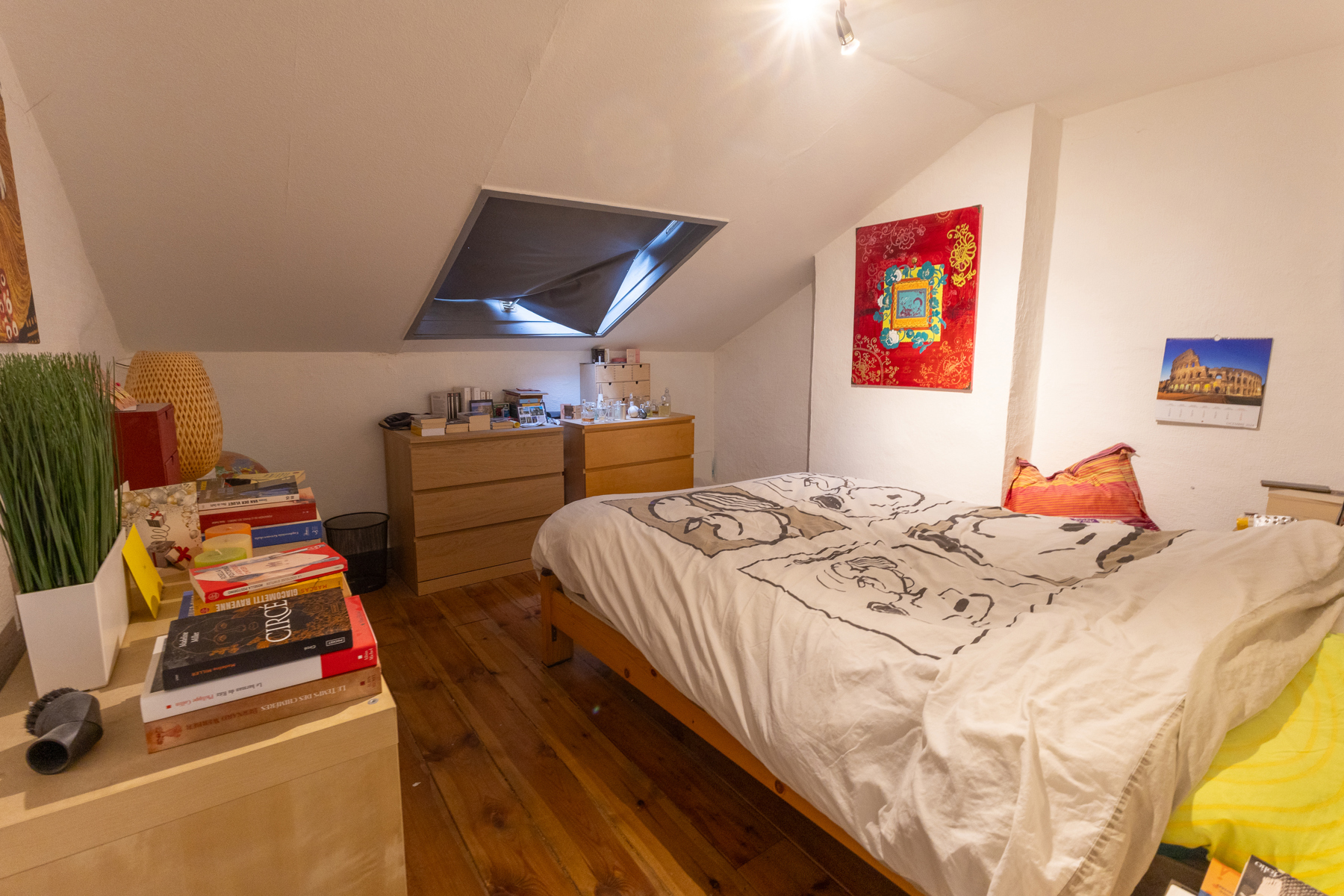 Au deuxième étage : appartement 2 chambres en duplex - Séjour ouvert sur la cuisine et une salle de bains. A l'étage : deux chambres mansardées. Bail de 1 an au 01/05/2009 - Loyer 500€ (photos 7 à 11)