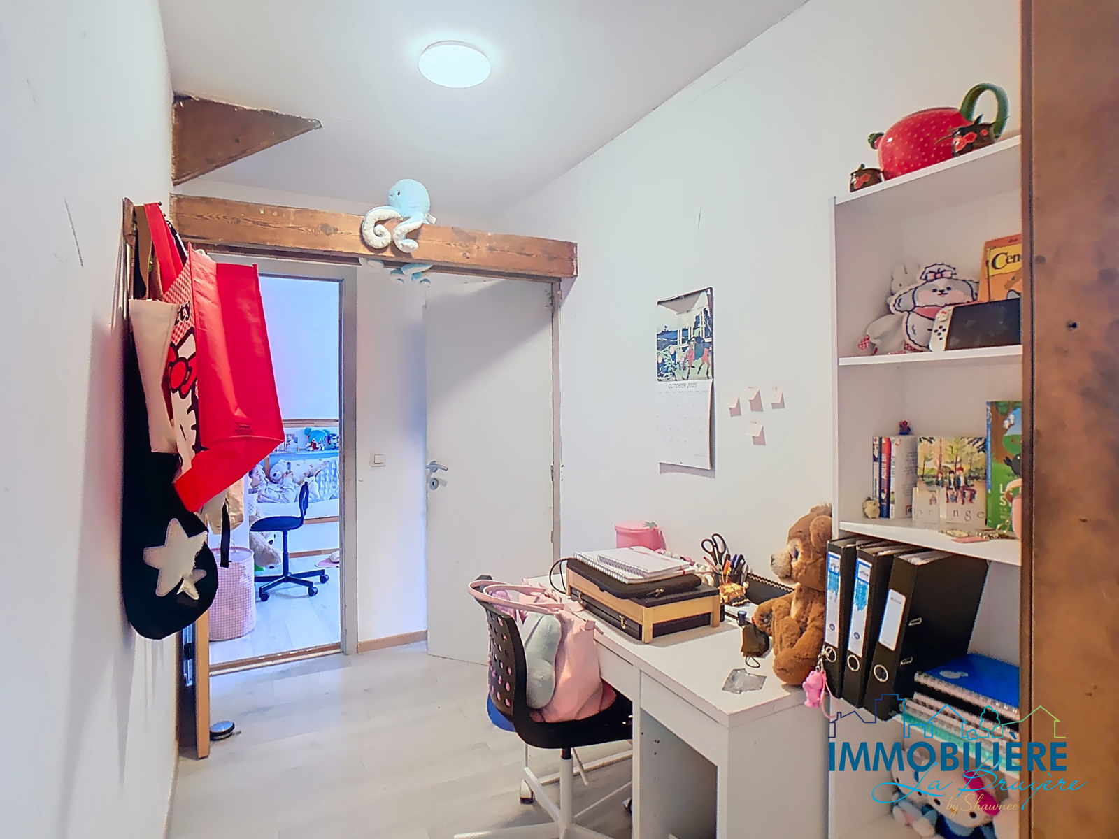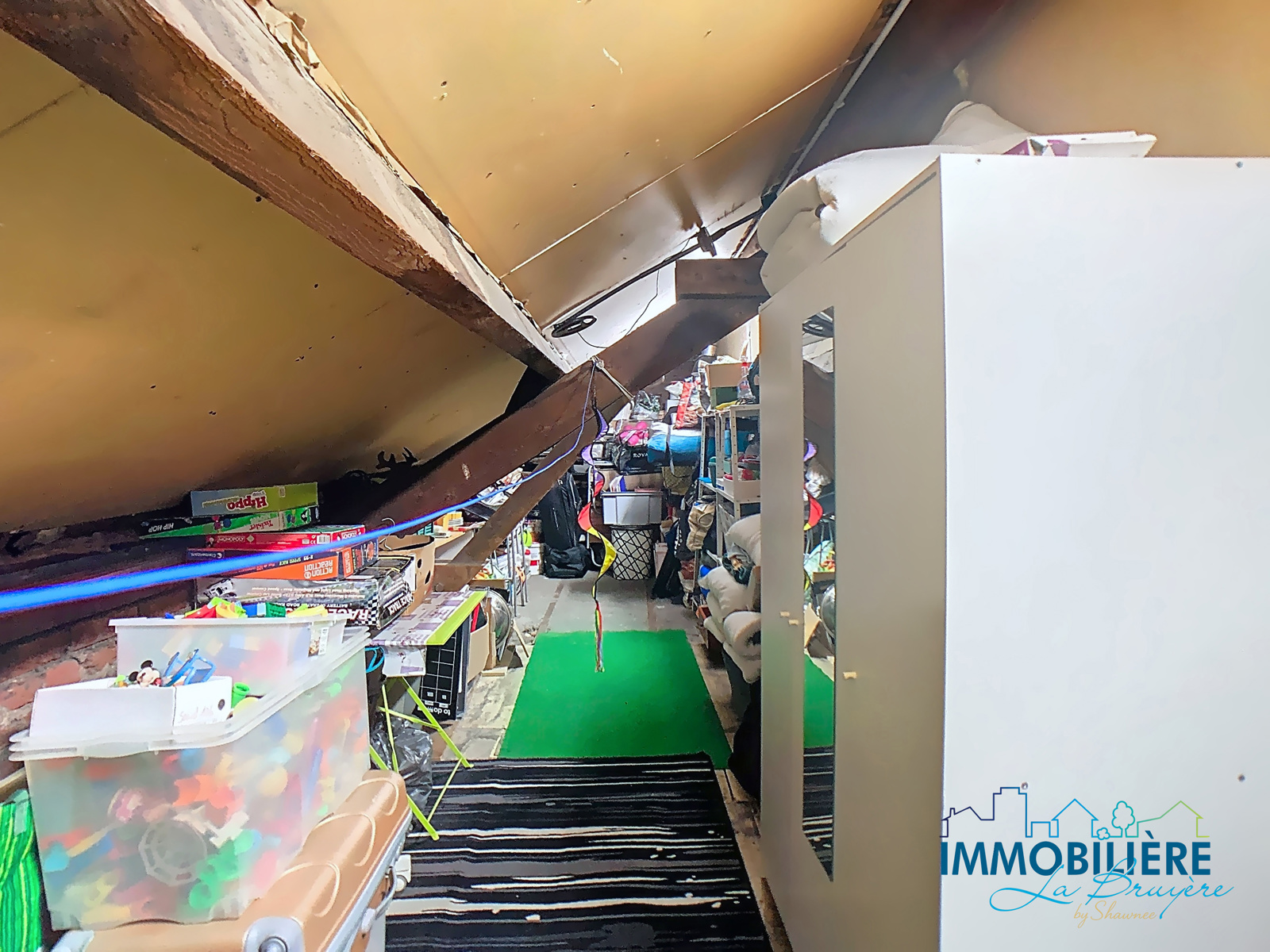 Au 2ème étage : grand palier (+/- 6m²), hall de nuit (1,6m x 3,2m), deux chambres (3,3m x 3,7m - 3,3m - 5,3m) et un grenier mansardé (1,9m x 8,7m)